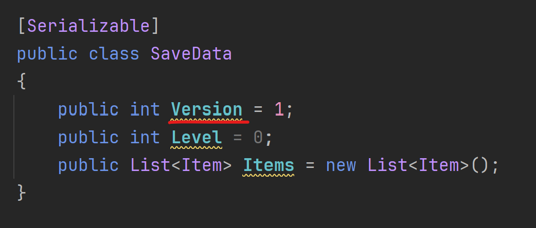 You might have noticed that I added a Version int in the SaveData. This is an example, but it's a great way to detect if a save file is from an older version.